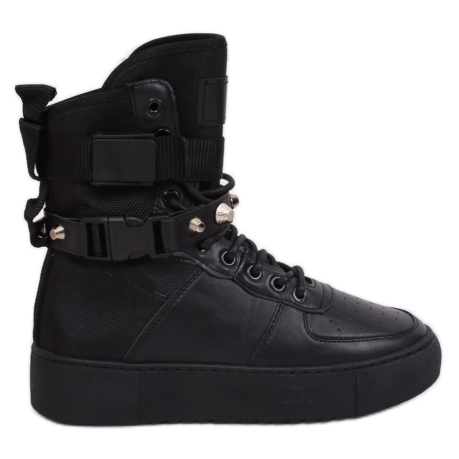 Y-025 Crne sportske cipele imaju visoki gornji dio koji doseže iznad gležnja, pružajući dodatnu potporu. Njihov dizajn temelji se na visokom potplatu, koji nije samo trend aktualne sezone, već pruža i odličnu amortizaciju.