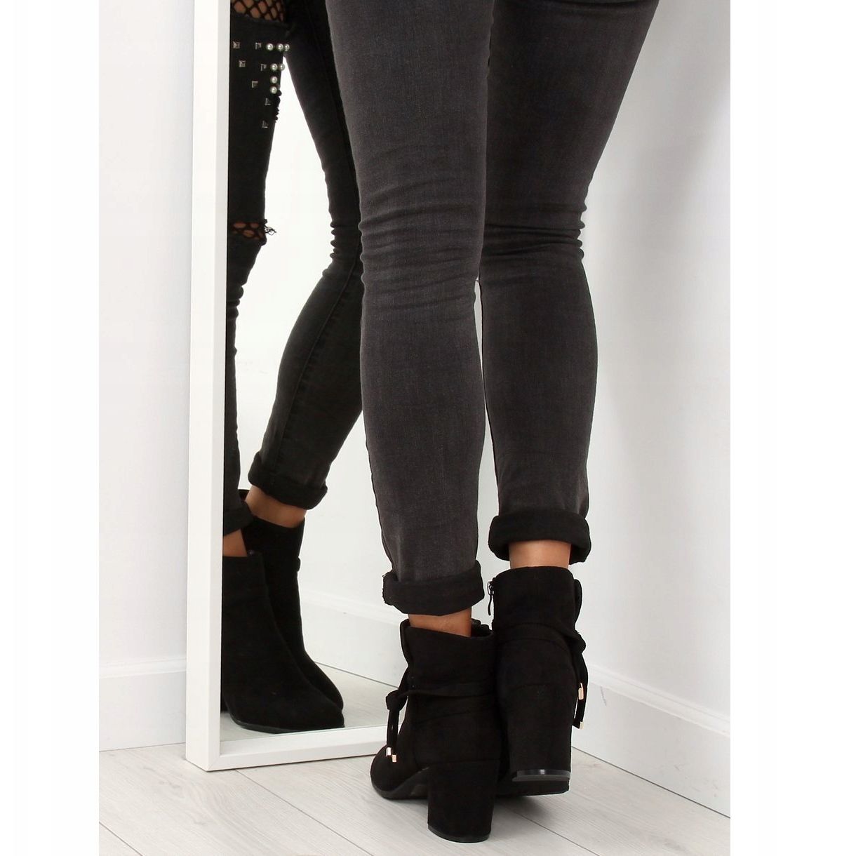 Otkrijte eleganciju i udobnost u jednom od najnovijih modela gležnjača na visoku petu - YL56 Black. Ove unikatne ženske gležnjače u klasičnoj crnoj boji mora imati svaka moderna žena. Njihov minimalistički oblik obogaćen je suptilnom, ukrasnom kravatom, što ih čini savršenim za svaku priliku.