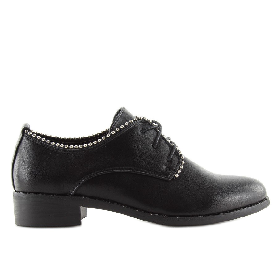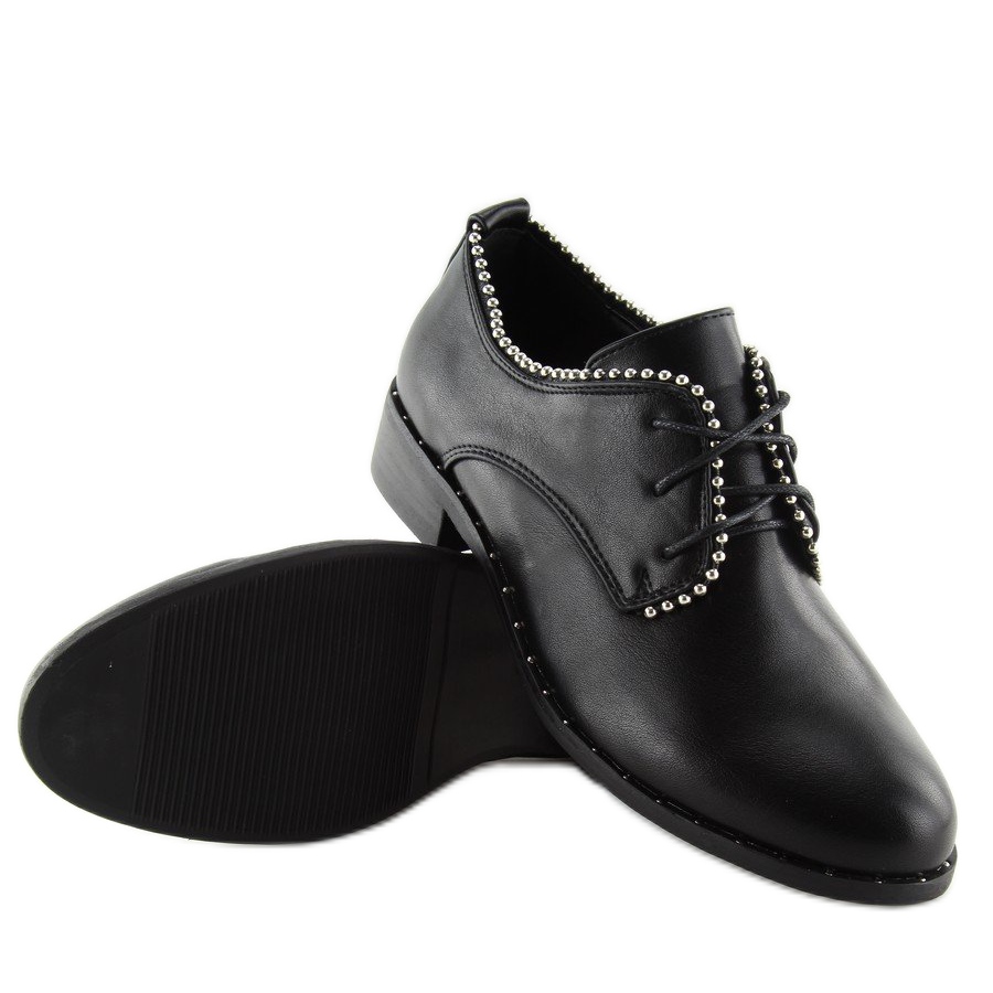 Otkrijte eleganciju i udobnost u jednom - ženske crne cipele na vezanje NC190 Black savršen su izbor za modernu ženu koja cijeni stil i udobnost. Ove elegantne mokasine kombiniraju bezvremenski dizajn s rock naglascima, kao što su srebrne perle i nitne oko potplata. Zahvaljujući kopčanju na vezicu, cipele se savršeno prilagođavaju širini stopala, što osigurava maksimalnu udobnost nošenja.