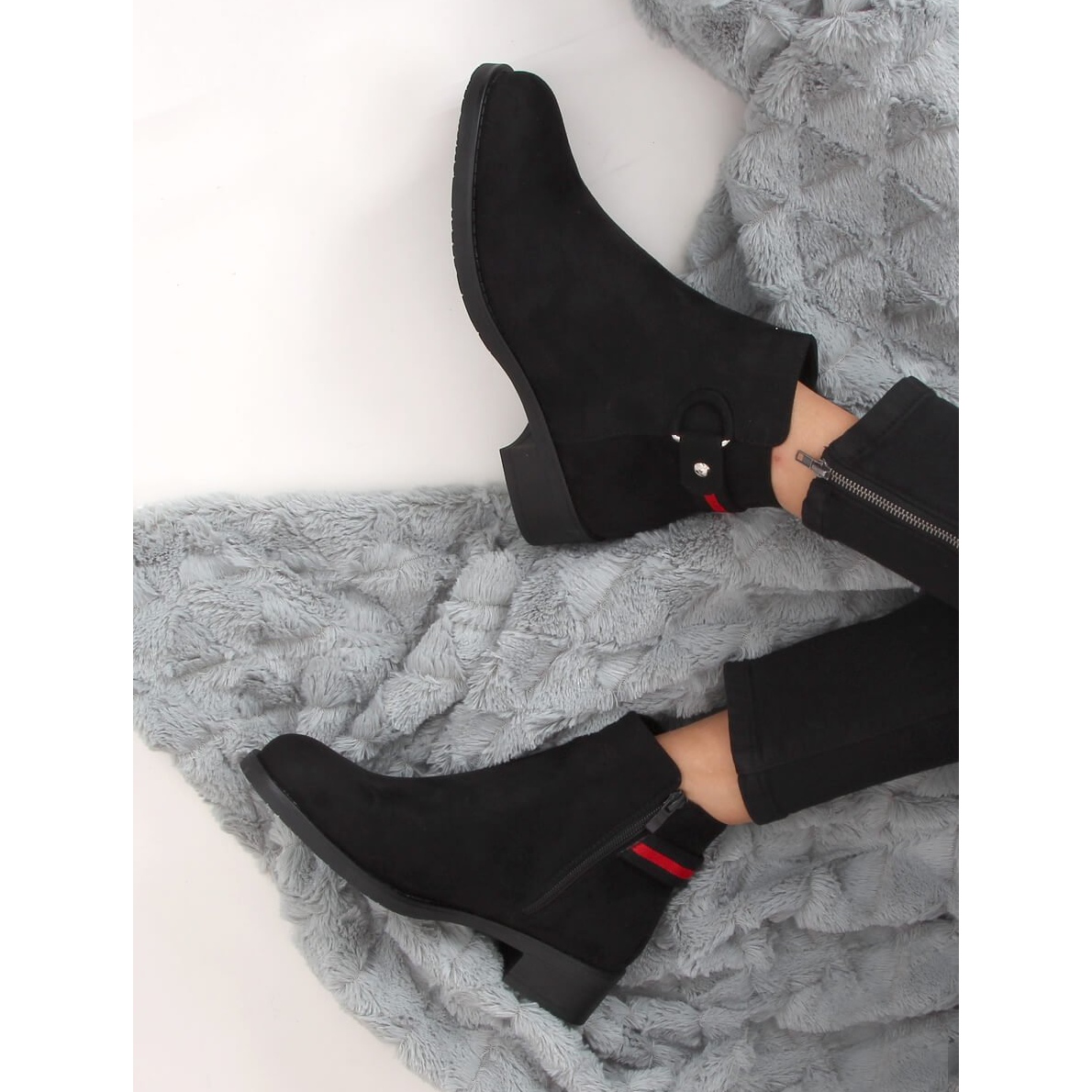 Pojedinosti: Crne ženske čizme Chelsea Q8AX1570-07 Crne crna crvena