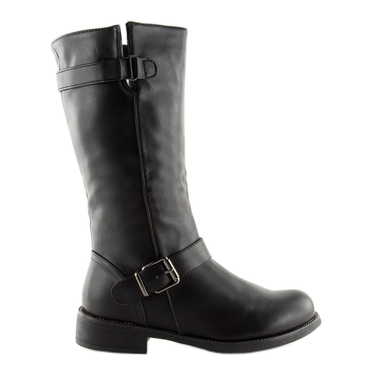 Ženske crne čizme JW19 Black savršen su izbor za svaku modernu ženu koja cijeni udobnost i moderan izgled. Ove klasične čizme s ravnim potplatom karakteriziraju zaobljeni vrhovi i upečatljive kopče koje im daju jedinstven karakter. Ukrasni rub oko potplata dodatno naglašava njihovu atraktivnost.