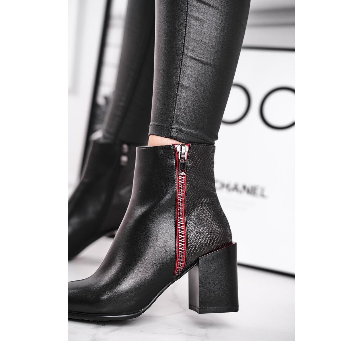 Izrađene od visokokvalitetne ekološke kože, ove čizme kombiniraju glatku teksturu i moderan animal print, dodajući prepoznatljiv stil svakom stajlingu. Veliki patentni zatvarač na vanjskom dijelu gornjeg dijela, s karakterističnim crvenim detaljem, nije samo ukras, već i praktično rješenje koje olakšava obuvanje. Dodatni patentni zatvarač čini nošenje ovih čizama još udobnijim.