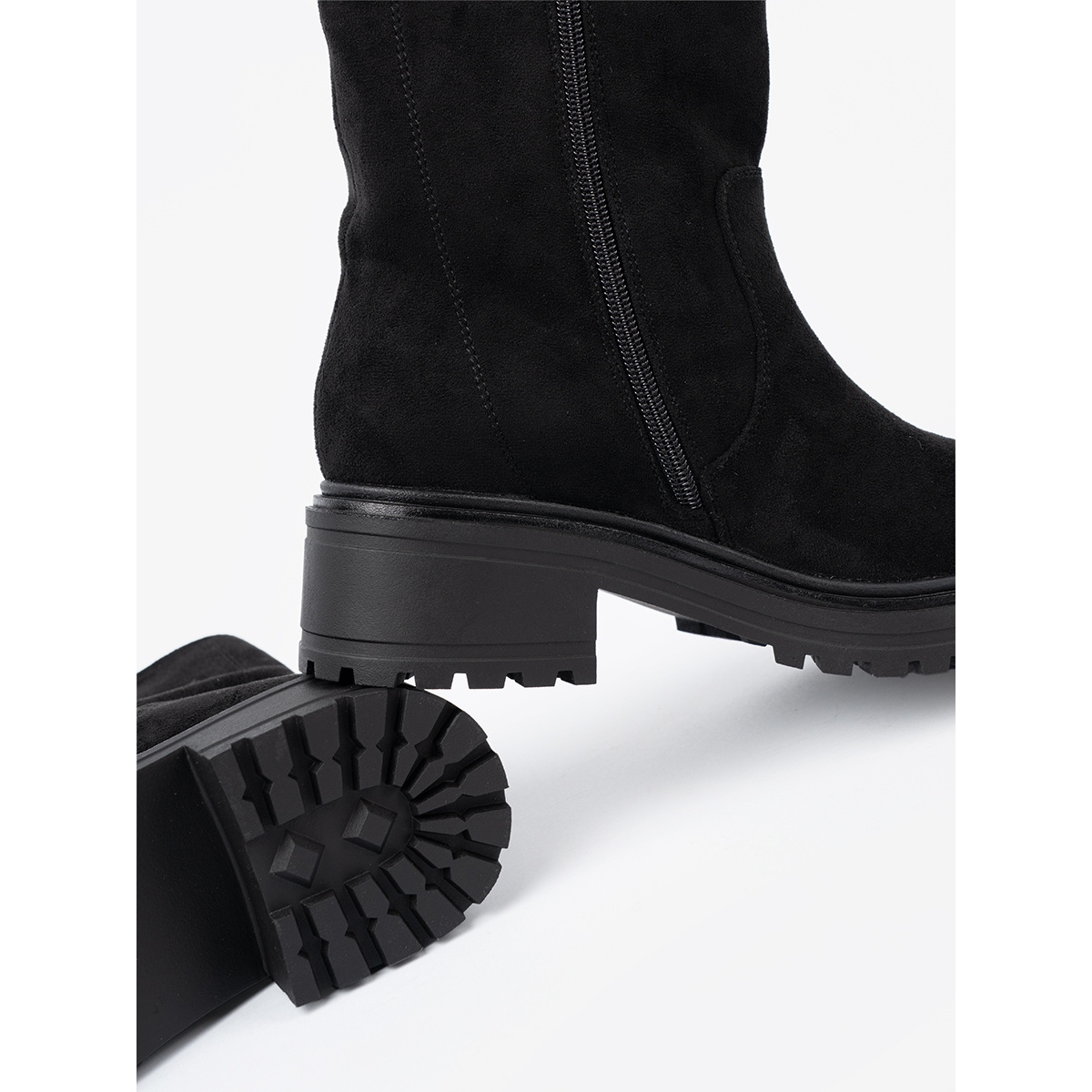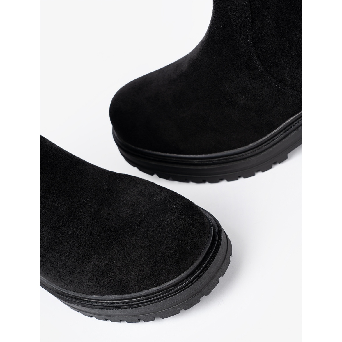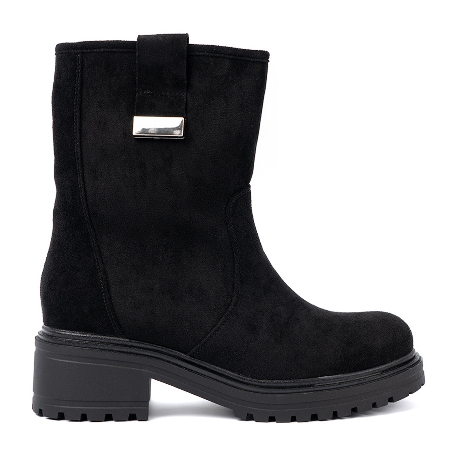 Masivna platforma 5 centimetara pruža izvrsnu stabilnost, dok izgrađena peta i okrugli nos jamče udobnost nošenja. Unutar čizama nalazi se umetak od tkanine koja se dobro prilagođava stopalu, a unutarnji materijal od imitacije kože i tkanine čini obuću ugodnom na dodir.