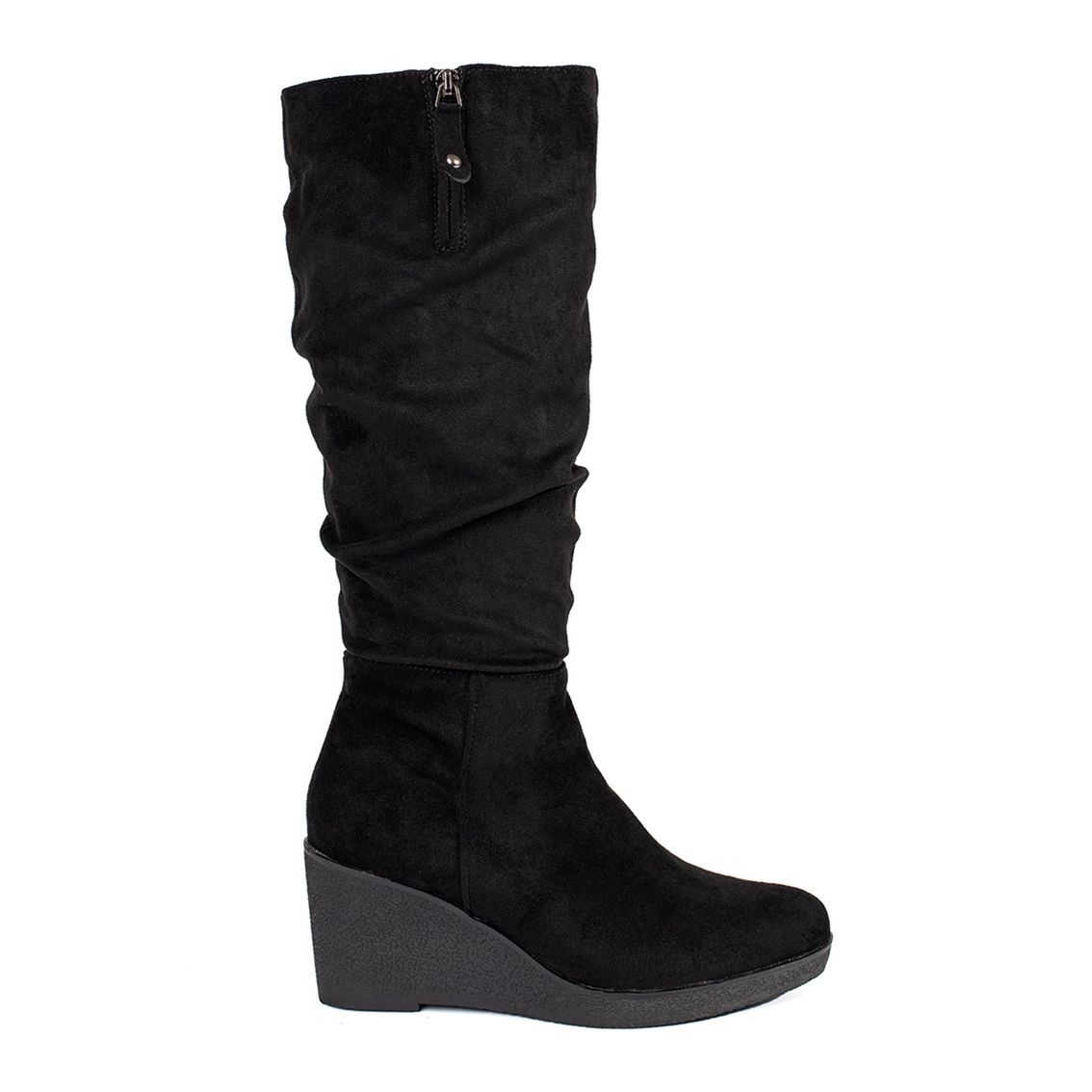 Pojedinosti: Crne ženske čizme na wedges od brušene kože crna