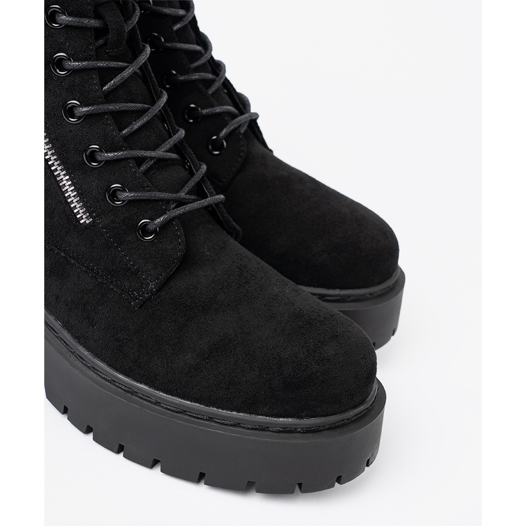 Trapperi su izrađeni od visokokvalitetne imitacijske antilop, što im daje elegantan i istodobno ležerni lik. Peta je ukočena i izgrađena -Up, što jamči stabilnost i potporu za stopalo, a okrugli nos pruža udobnost tijekom dugih dana. Visina gornjeg dijela je 16 cm, što savršeno štiti gležanj tijekom hladnih dana.