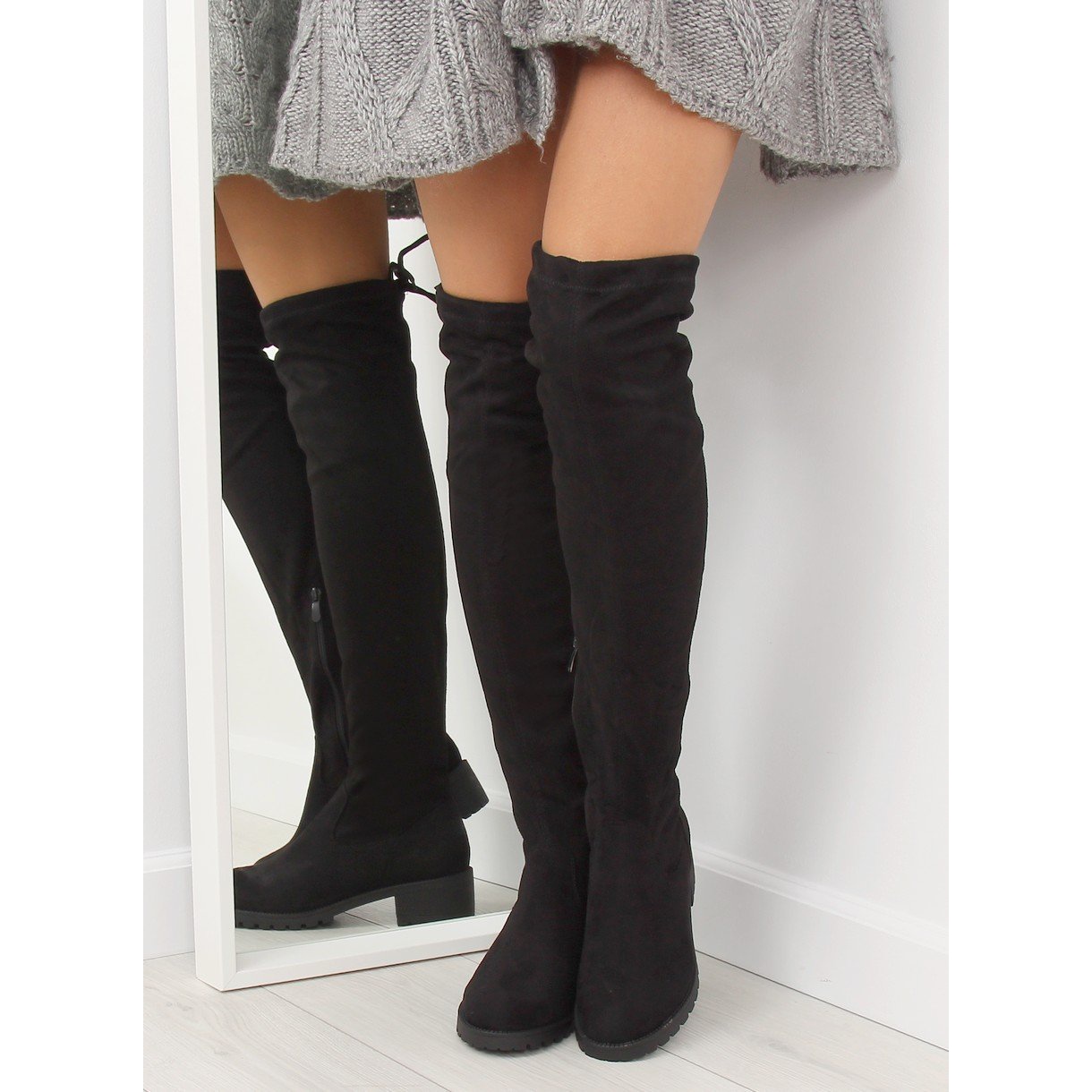 Pojedinosti: Crne ženske čizme za bedra NS013 Crna