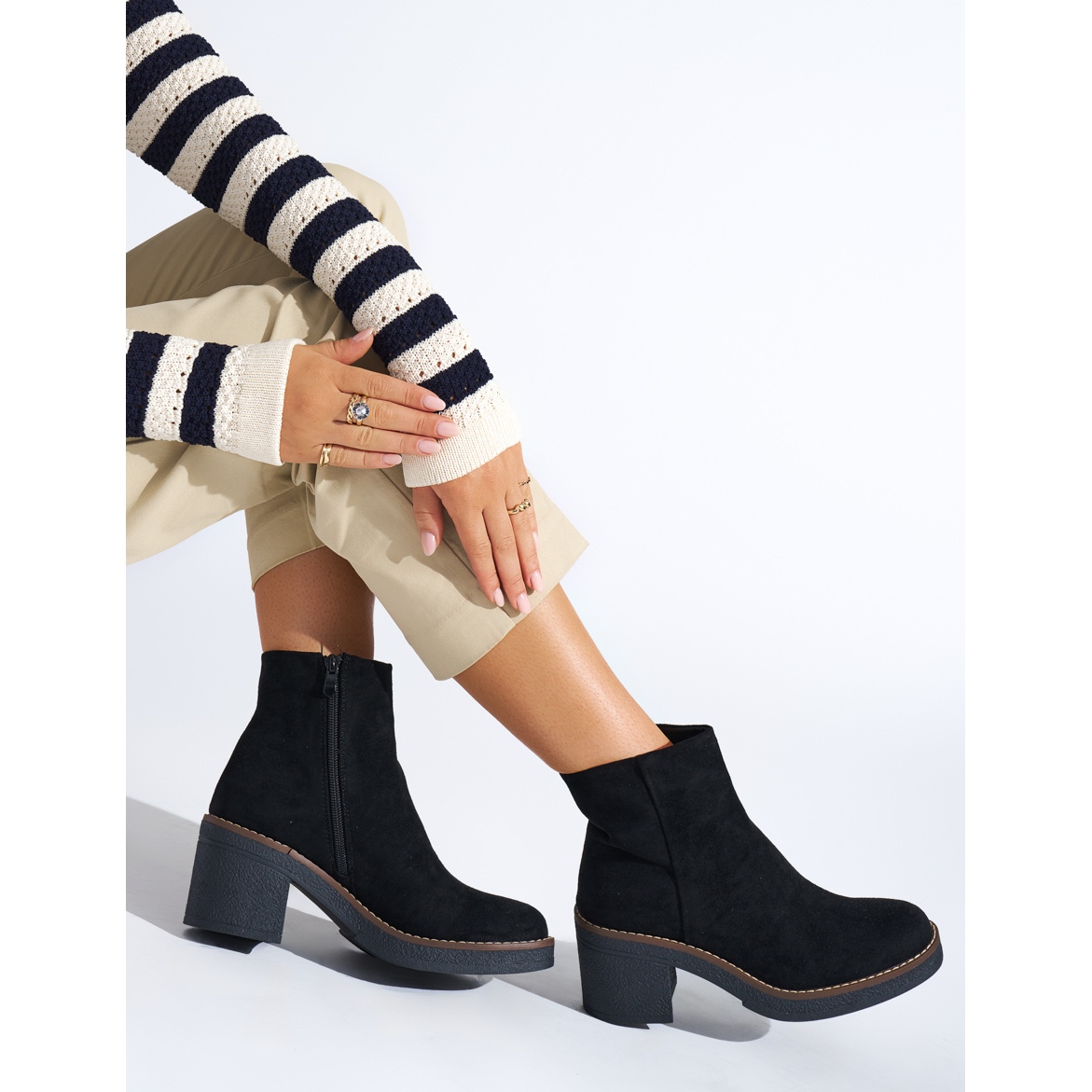 Crna boja i minimalistički, apsolutni izgled čine ove čizme univerzalnim i odgovaraju mnogim različitim stilovima. ZIP pričvršćivač olakšava stavljanje i uklanjanje cipela. Dodatna prednost je ugrađena peta koja dodaje stabilnost.