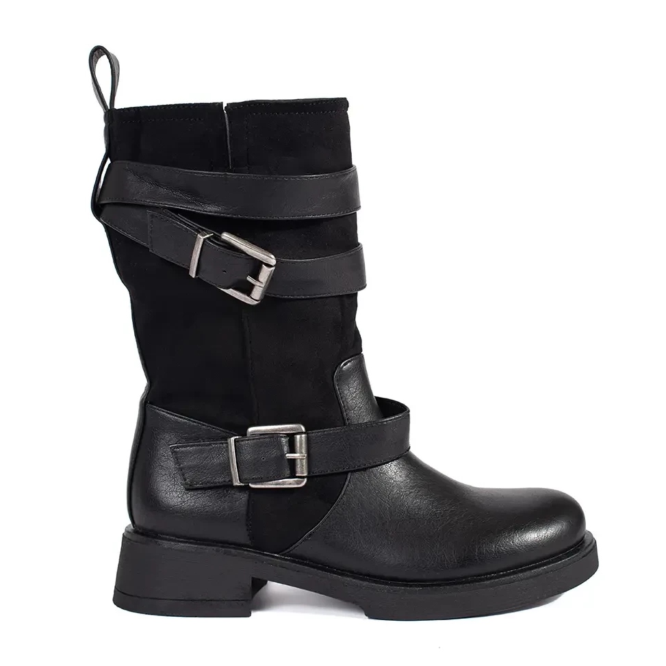 Ženske crne čizme s niskim česticama sa kopčama savršen su izbor za žene koje traže kombinacije stila i udobnosti. Napravljene od organske kože i antilop, ove čizme kombiniraju moderan dizajn s praktičnom primjenom. Njihova univerzalna crna boja čini ih savršenim dodatkom mnogim svakodnevnim stilizacijama, od ležernijih do malo elegantnijih.