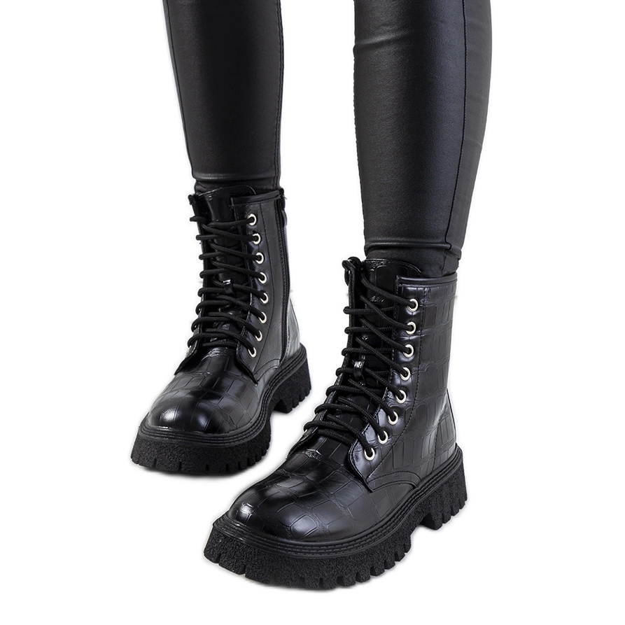 Crne ženske čizme s eko-košenom vezanom je savršen izbor za jesen, kombinirajući moderan stil i funkcionalnost. Inspiracija za stvaranje ovog modela bile su ikonične čizme, koje trendove obuće daju originalni lik. Izrađene od visokokvalitetne organske kože, čizme oduševljavaju osjetljivom krokodilskom strukturom, zbog čega postaju pravi element mode u svakoj stilizaciji.