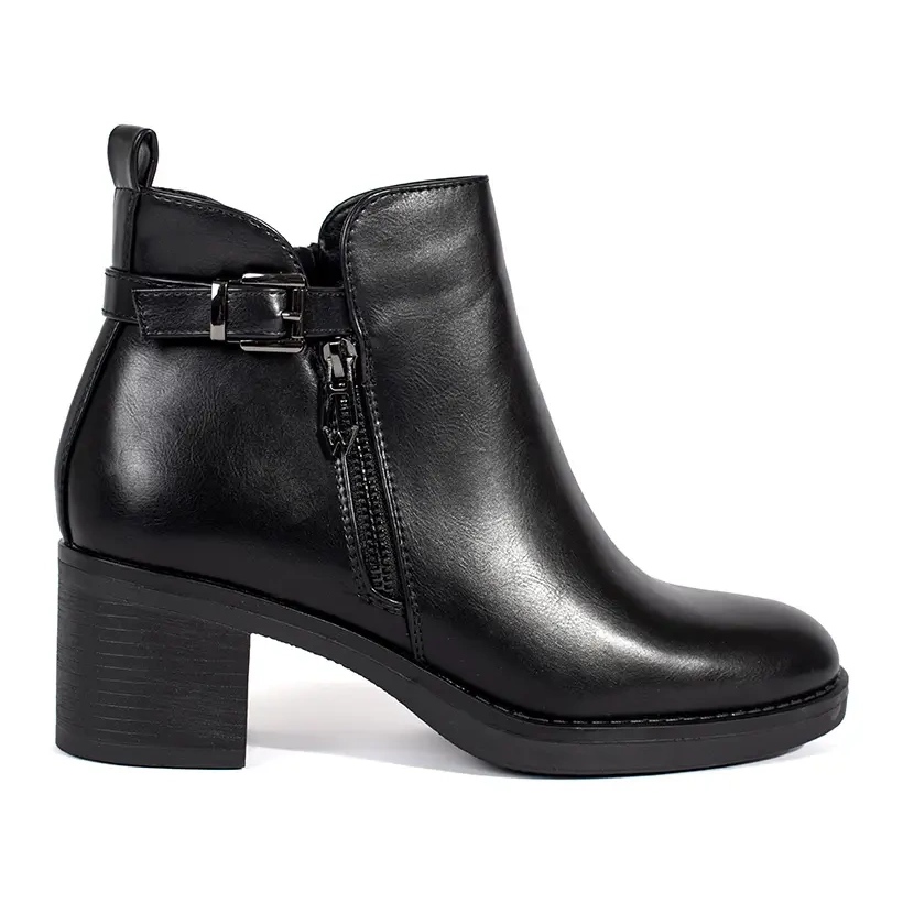 Crne ženske gležnjače s ukrasnim patentnim zatvaračem i kopčom crna
