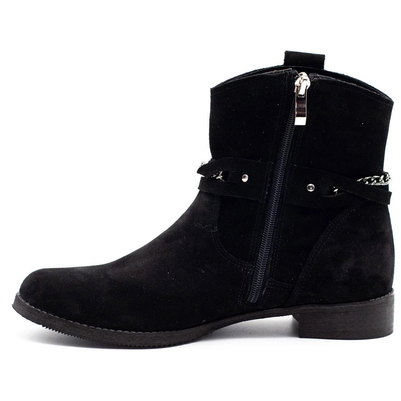 Moderan, udoban i ugodan - savršen za zimske dane. Crni antilop (prirodna koža) i ukrasni lanac dodaju karakter, a unutarnje zagrijavanje pruža udobnost čak i pri niskim temperaturama. Profilirani umetak i čvrsta, sintetička potplata jamstva stabilna i sigurna podrška stopala. Zipper sa strane olakšava stavljanje i uklanjanje, a niska peta od 3 cm osigurava udobnost nošenja cijeli dan.