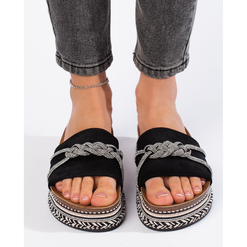 Crna boja s dodatkom cirkona daje japankama elegantan završetak te se savršeno uklapaju u svakodnevni i elegantniji stil. Unutrašnjost japanki je završena tekstilnim umetkom, što povećava udobnost dugotrajnog nošenja.