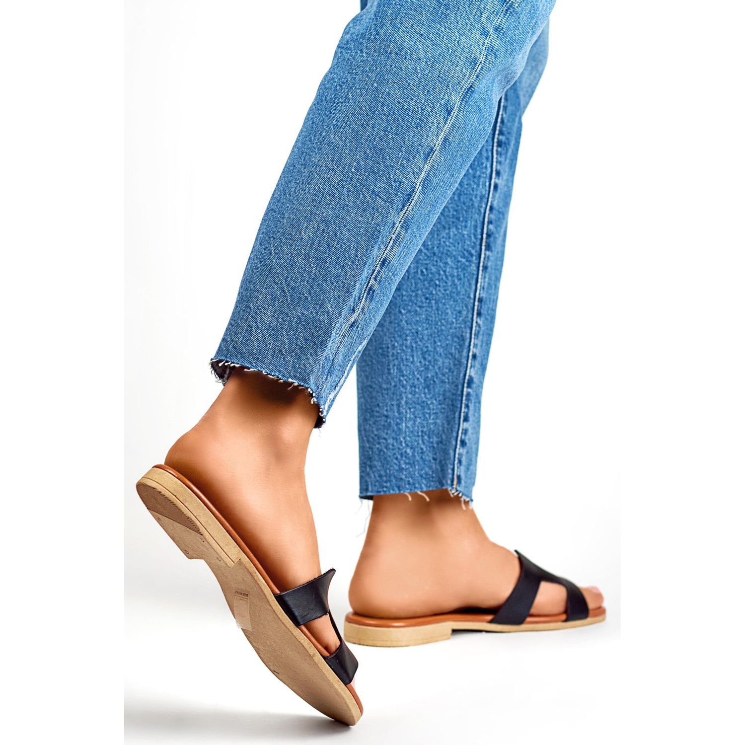 Izrađene od visokokvalitetne prirodne kože, japanke nude ne samo estetski izgled, već i izdržljivost i udobnost nošenja. Ravna peta visine 1 cm osigurava izvrsnu stabilnost, a slip-on oblik omogućuje jednostavno obuvanje i brzo izuvanje. Otvoreni nožni prst dodaje lakoću i omogućuje slobodno disanje stopala.