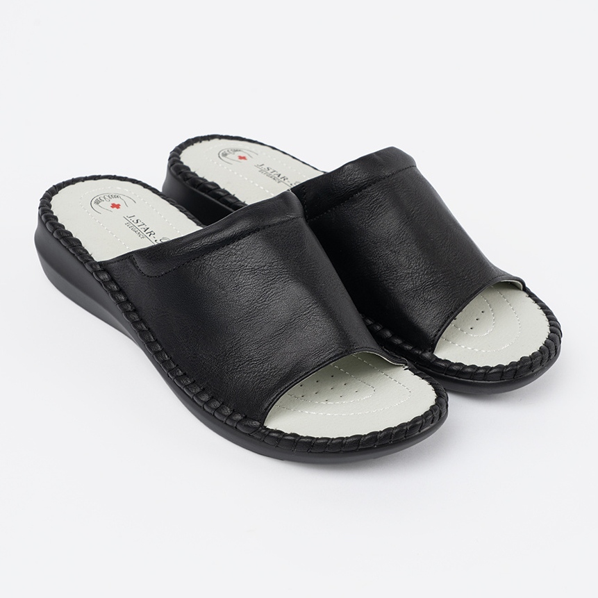 J. Star Crne ženske papuče s kožnim umetkom crna
