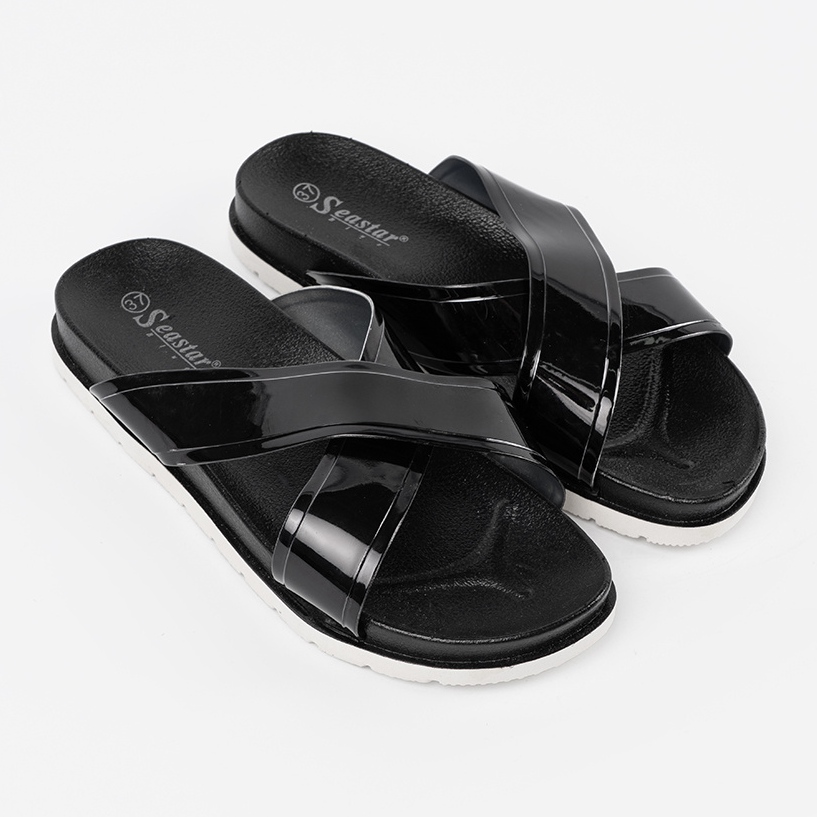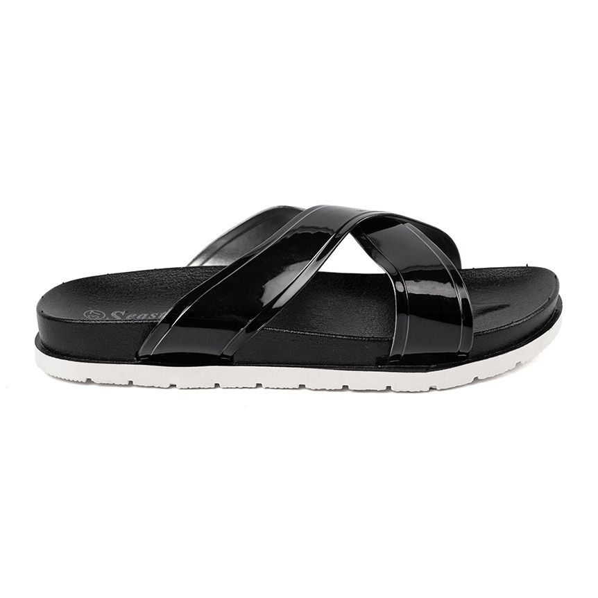 Pojedinosti: Seastar Crne ženske papuče s lakiranim prugama crna