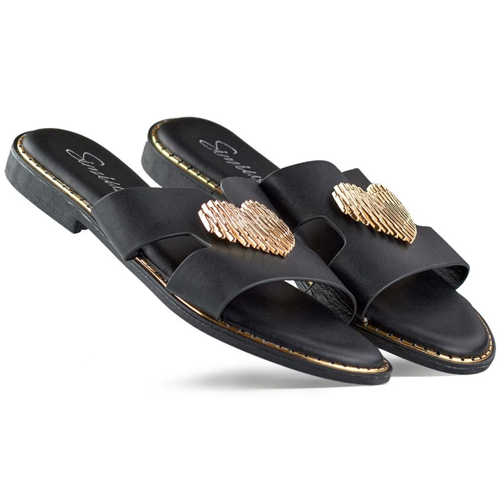 Pojedinosti: Crne ženske papuče sa ukrasnim srcem crna