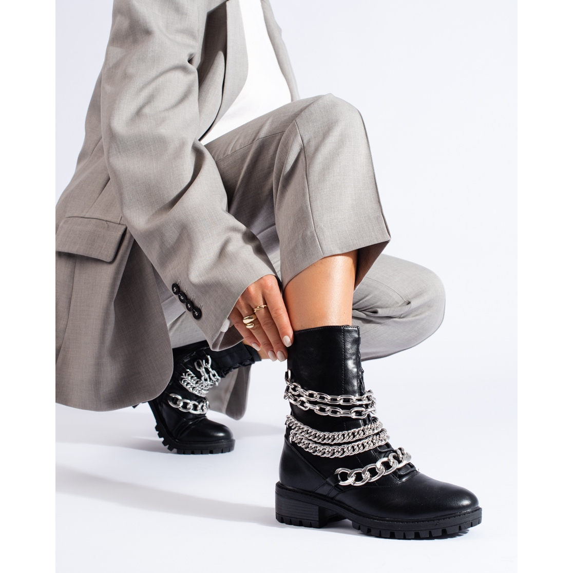 Ovaj model je prilagođen promjenjivom vremenu, pogodan za tri godišnja doba: jesen, zimu i proljeće. Izrađen od visokokvalitetne imitacije kože, spaja izdržljivost i estetski izgled, a standardna boja mu je elegantna nijansa crne. Gležnjače ističu svaki stajling zahvaljujući dodatnom srebrnom lančiću koji će dodati malo buntovništva i karaktera.