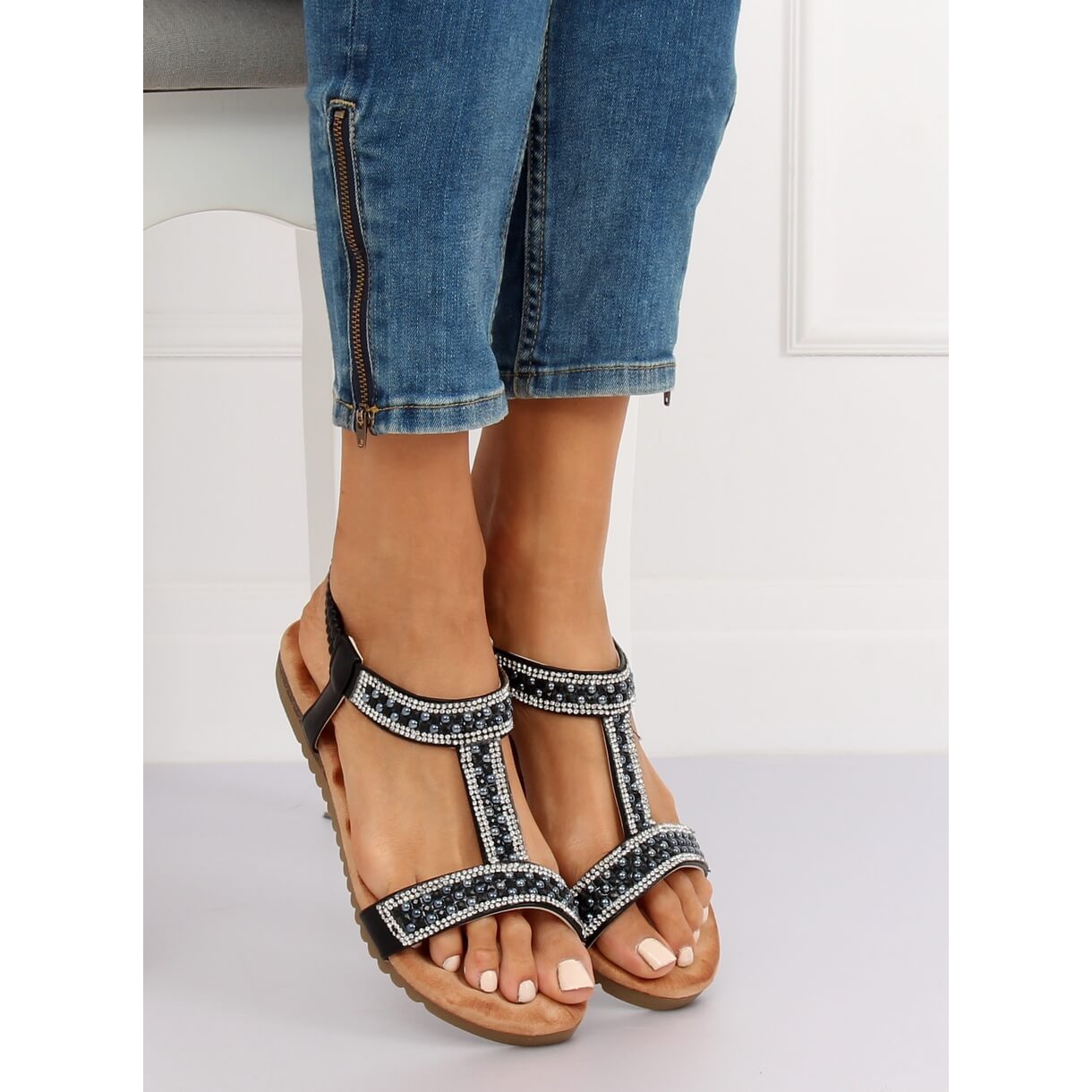 Ove iznimno elegantne cipele imaju suptilne, tanke remenčiće koji savršeno ističu žensku figuru. Dodatna prednost su ukrasi u obliku štrasa koji im daju jedinstven karakter. Osim toga, ravna peta od 2 cm čini ih savršenim sandalama za svaki dan, osiguravajući slobodu kretanja i udobnost.