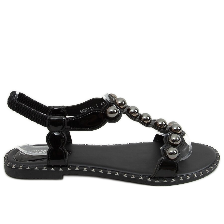 Otkrijte eleganciju i udobnost uz crne ženske sandale M6P111-1 Black! Ove jedinstvene ravne sandale savršena su kombinacija stila i udobnosti koja će pristajati uz svaki svakodnevni stajling. Njihov ekstravagantan dizajn s lakiranom završnom obradom i sjajnim kuglicama privlači pozornost, a vi ćete zasigurno ostaviti zadivljujući dojam kamo god pošli.