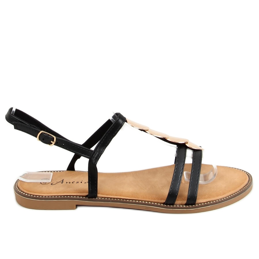 Sandale N-101 Black odlikuje se upečatljivom zlatnom aplikacijom koja dodaje eleganciju i čini ih savršenim dodatkom svakom stajlingu. Glatka površina i klasičan kroj čine ih univerzalnima - lako ih možete kombinirati i uz ljetne haljine i uz ležerne hlače.