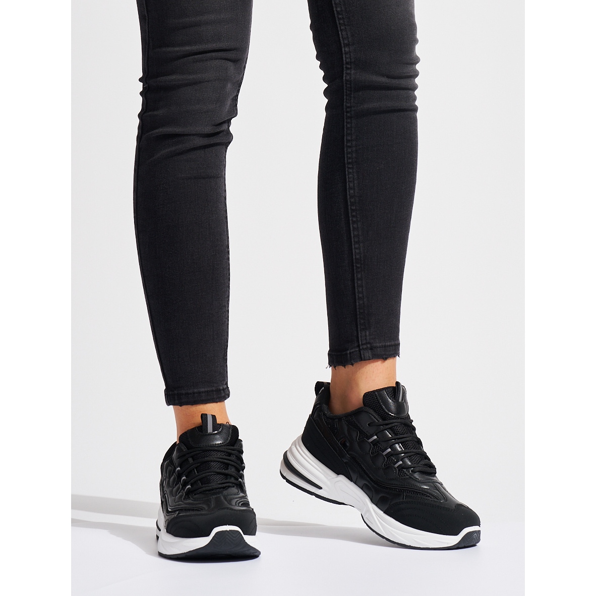 Pojedinosti: Crne ženske sportske cipele sa debelim đonom crna