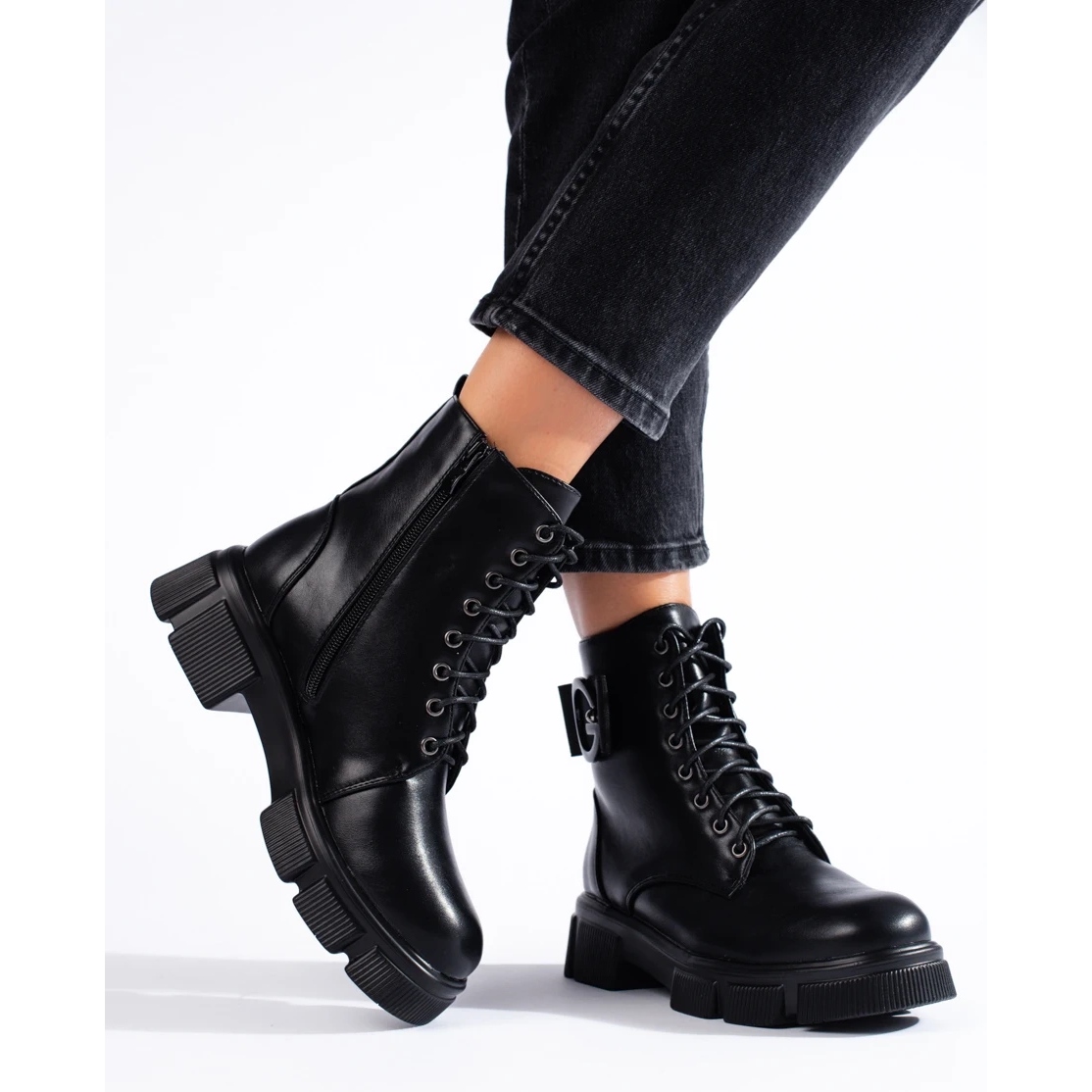 Klasične, crne žene radnice izrađene od visokokvalitetne ekološke kože. Model koji kombinira povremeni i rock karakter, idealan za jesensku/zimsku sezonu - izoliran, udoban i stabilan, radit će i za svakodnevne stililizacije i za grabežljivi izgled.