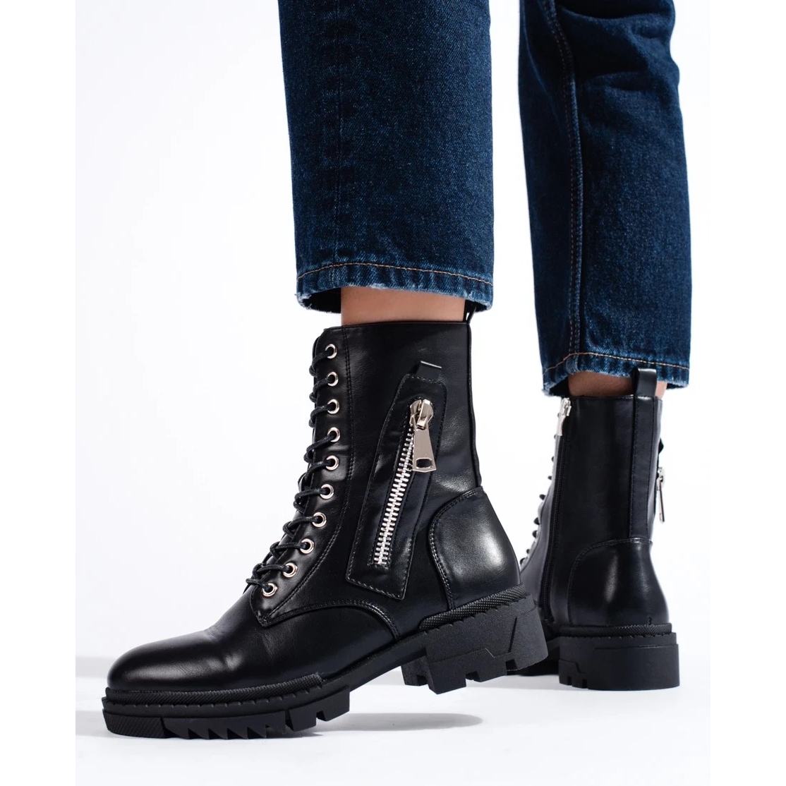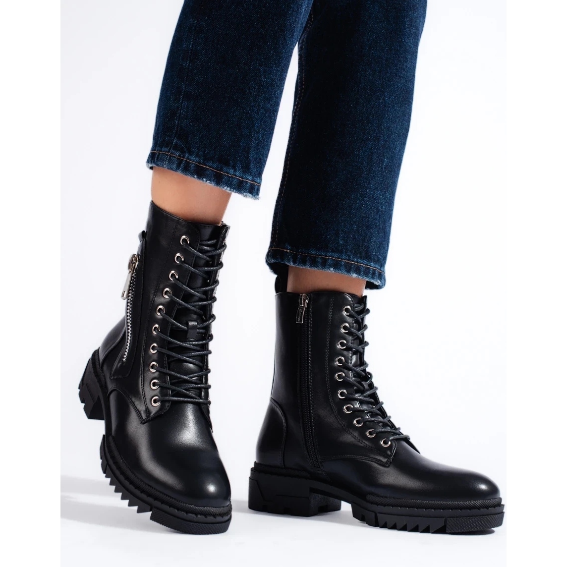 Klasično, a istovremeno s kandžom - Crne ženske radnice iz W. Potocki univerzalni su model za hladnije dane. Kombinacija ležernog i rock karaktera, čvrste ekološke kože i toplog zagrijavanja čini da cipele djeluju i u svakodnevnim stilizacijama i u više grabežljivih kombinacija.