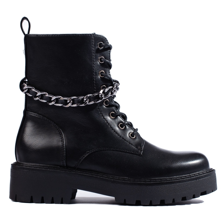 Elegantni i udobni crni radnici, kombinirajući ležerni i stil stil. Izrađena od ekološke kože, izolirana s "obućom pokrivačem", idealno za hladnije jesenske i zimske dane. Dekorativni lanac dodaje karakter, a praktični zatvarač i pričvršćivanje za vezanje osigurava lako stavljanje i uklapanje u stopalo.