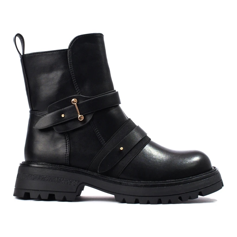 Crni radnici sa zaštitnikom univerzalne su cipele za žene koje cijele sezone cijene povremeni i rock izgled i udobnost. Izrađena od organske kože, s zagrijavanjem i potplatom bez klizanja s gazištem - savršenim za hladnije dane i neravne površine.