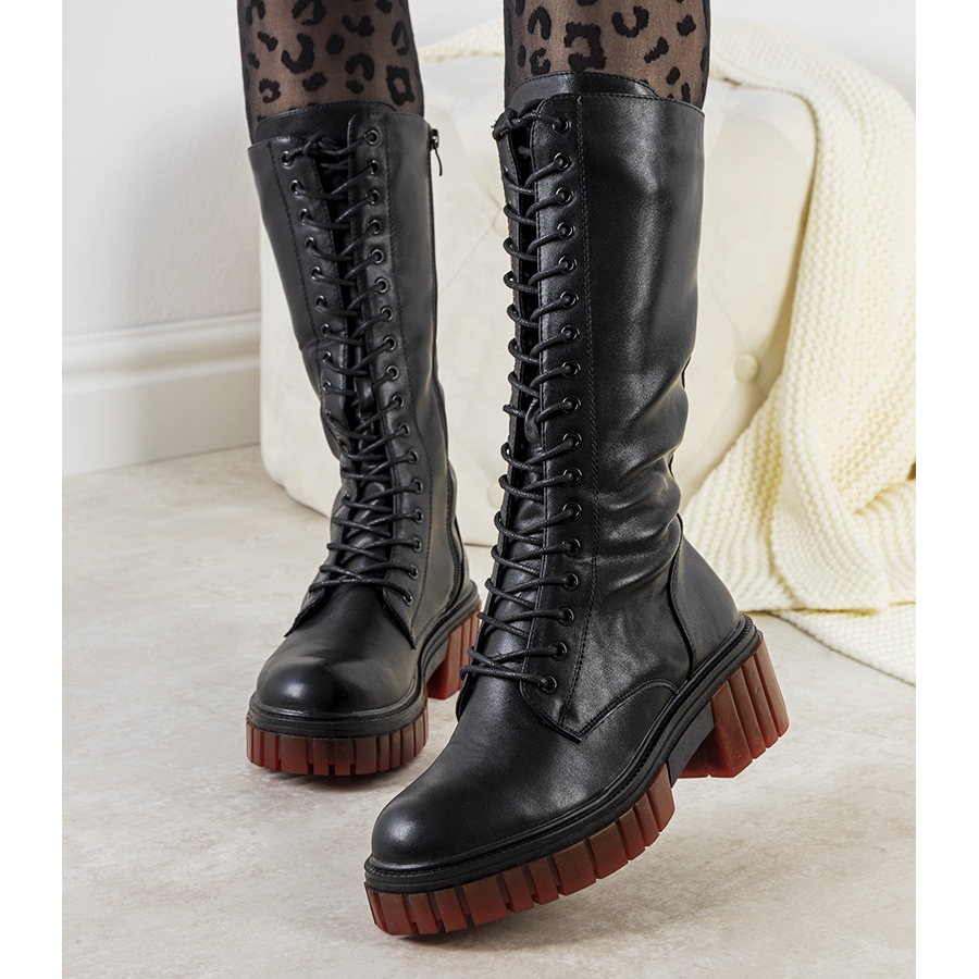 Crna ekološka koža od koje su izrađene je izdržljiv materijal koji se lako čisti. Crveni traktor potplat moderan je naglasak koji privlači poglede i čini ove cipele apsolutnim must-haveom ove sezone.