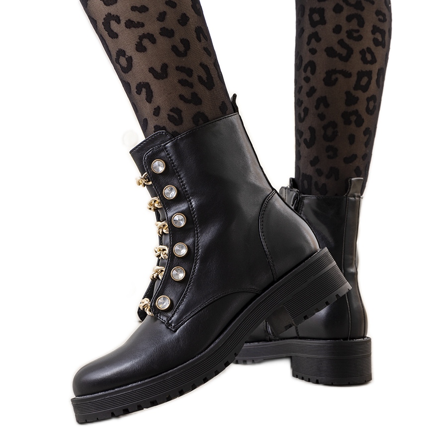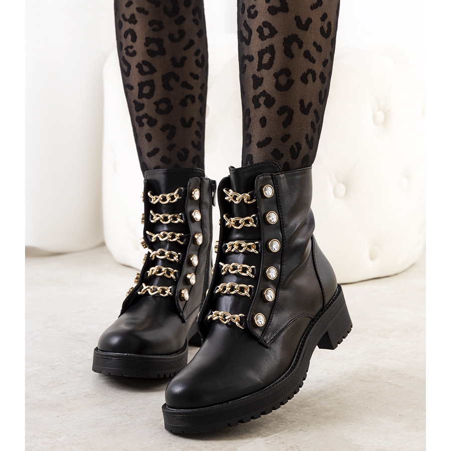 Otkrijte najnoviji model zamki Curiel marke PA1 - savršen izbor za svaku modernu ženu! Ove elegantne crne čizme spajaju stil i udobnost, što ih čini nezaobilaznim elementom vaše jesenske garderobe. Zlatni lančić koji imitira vezice i suptilni kamenčići daju im jedinstven karakter koji će zasigurno privući pažnju.