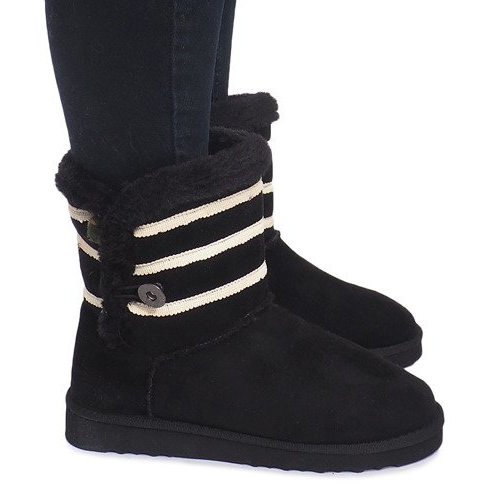 Eskimo čizme koje se kopčaju gumbom odlikuju se modernim dizajnom, upotpunjenim ukrasnim bijelim prugama i krznenim obrubom. Zahvaljujući izolaciji, ova obuća je savršena za hladnije dane, nudi toplinu i udobnost nošenja. Osim toga, njihov karakterističan zaobljen vrh i visoki gornji dio, koji doseže do sredine lista, čine ih ne samo praktičnima, već i elegantnima.