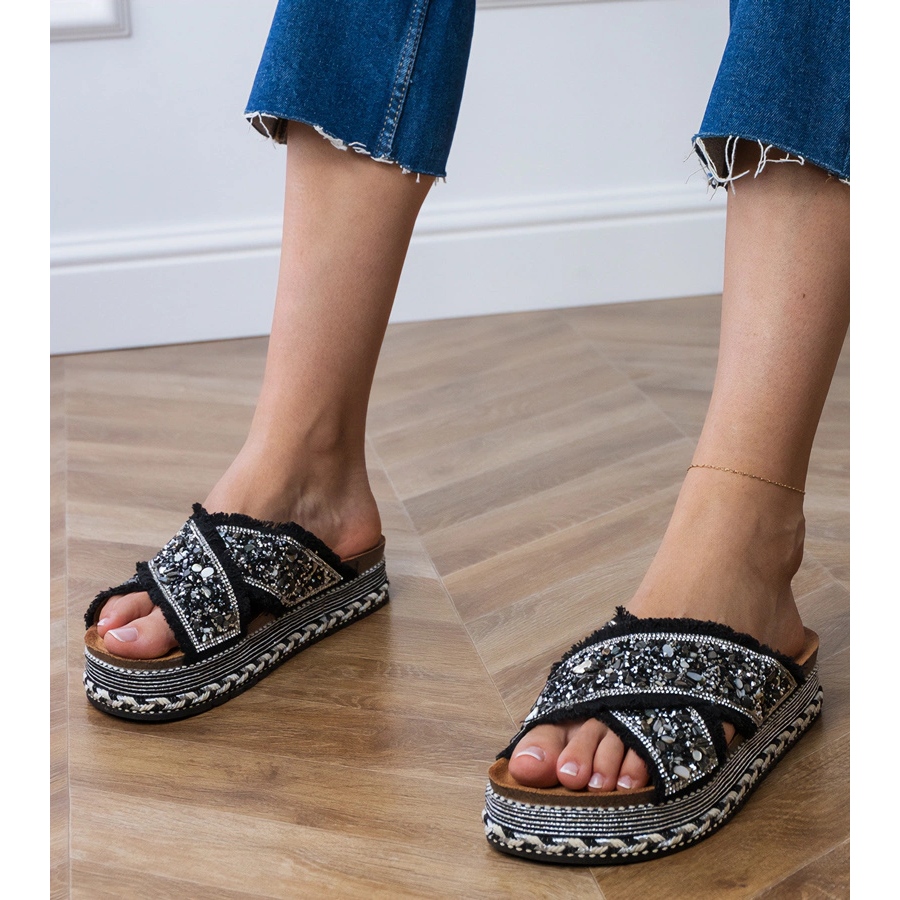 Otkrijte neobičan stil i udobnost s crnim jastucima s prugama s prugama, koji su savršena kombinacija elegancije i svakodnevnog slabosti. X5-376 je klasik koji će biti savršen ljeti, kako na plaži, tako i tijekom šetnji u gradu. Njihova minimalistička crna boja tjera ih u bilo koji stil, a istovremeno dodaju malo sjaja zahvaljujući suptilnim cirkonima postavljenim na pruge.
