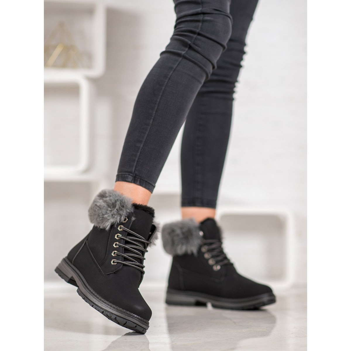 Investirajte u udobnost i moderan stil uz crne SHELOVET zamke s krznom, savršene za svakodnevnu upotrebu. Uživajte u udobnosti i atraktivnom izgledu tijekom cijele jeseni i zime!