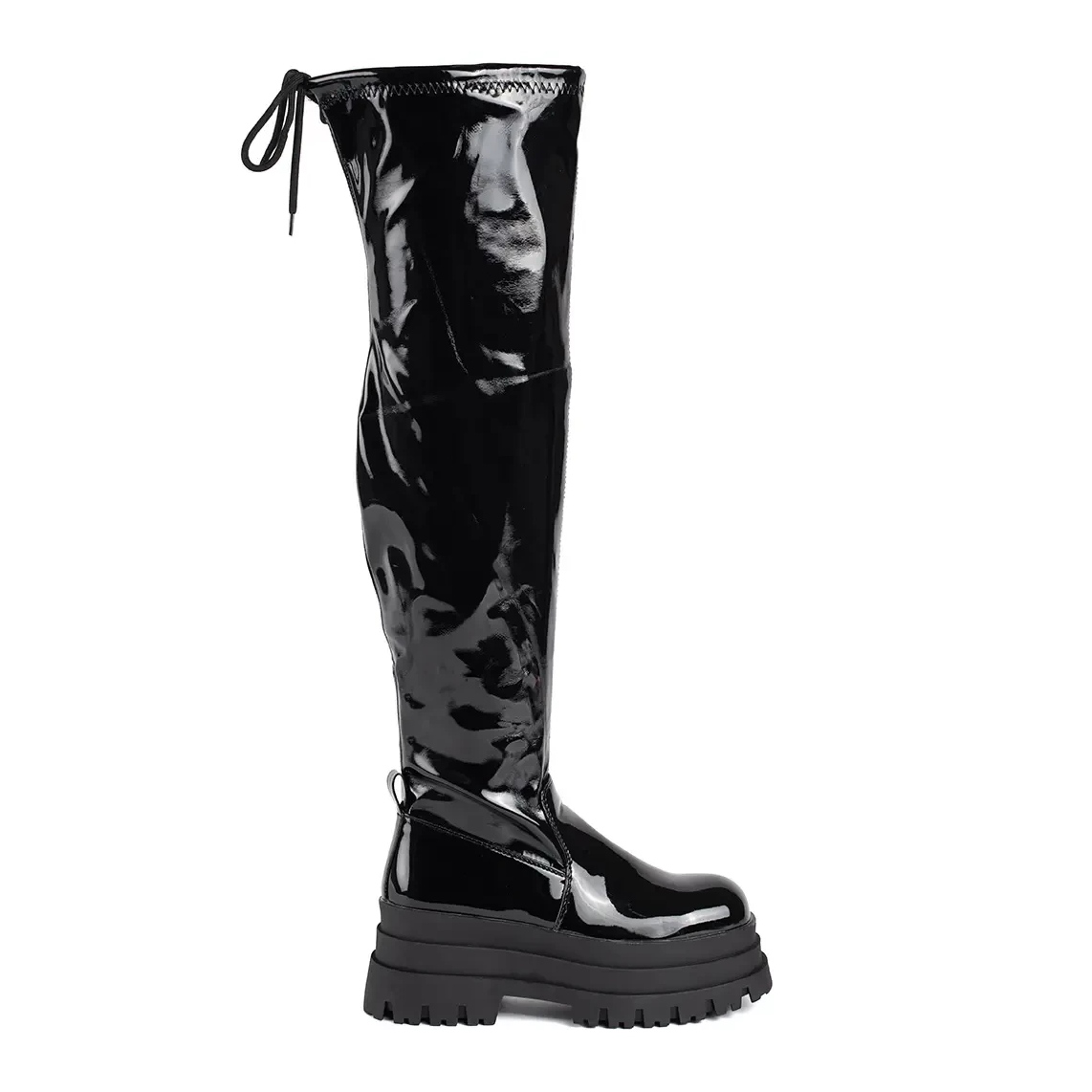 Napravljeni od ekološke kože visokog kvaliteta, ovi mušketi kombiniraju moderan dizajn s pažnjom na okoliš. Okrugli nožni prst i puna peta osiguravaju udobnost, a ugrađeni gornji 55 cm, savršeno naglašava figuru, dosegnuvši iznad koljena. Zahvaljujući visokoj platformi visoke 7,5 cm, dobit ćete dodatni rast i istodobno udobnost, što ove cipele čini odličnim izborom za svaku priliku.