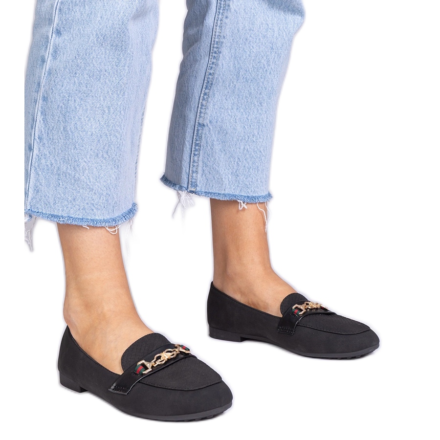 Pojedinosti: Crni loaferi s mat finišom sa zlatnim ukrasom crna