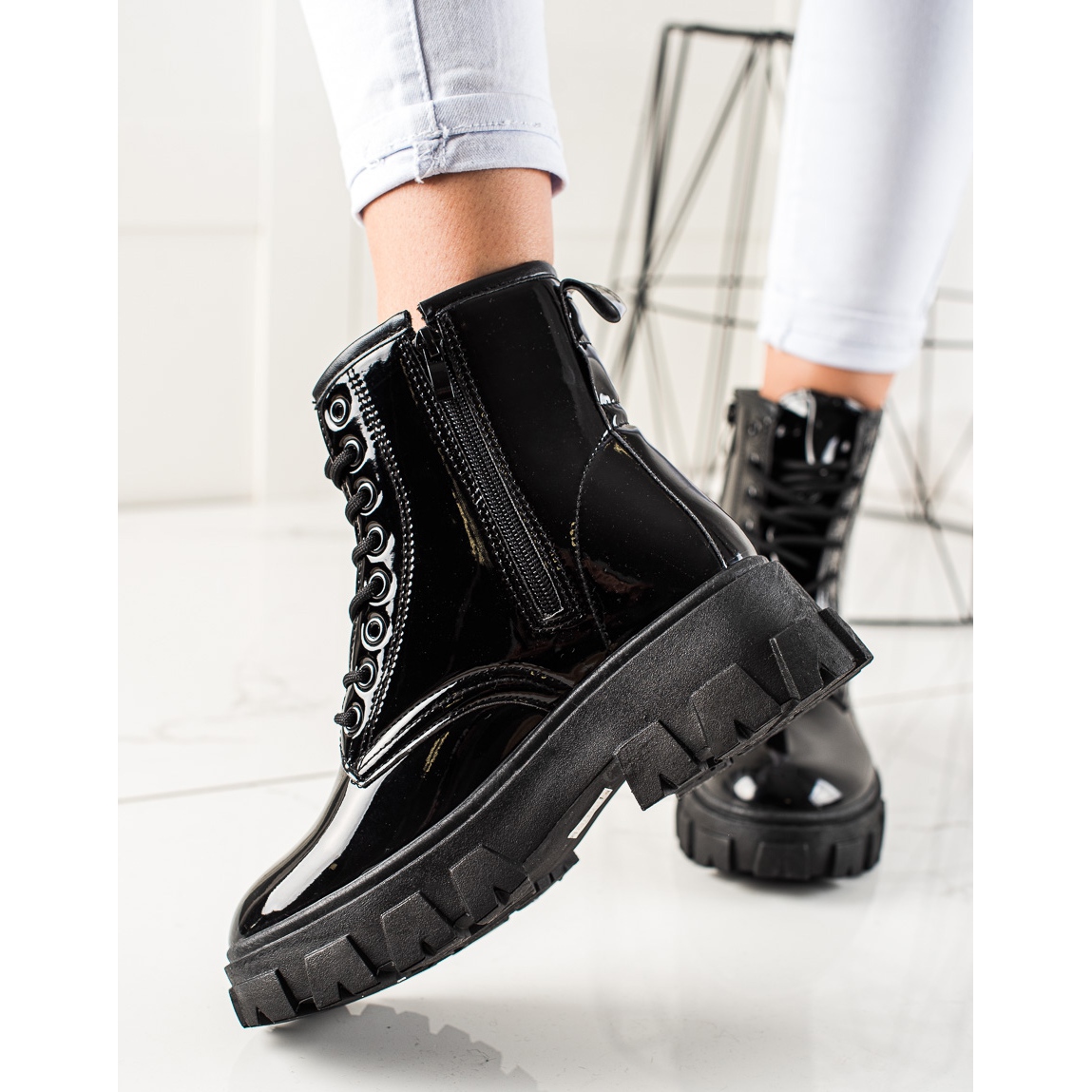 Izrađene od visokokvalitetne ekološke kože, ove radne ne samo da izgledaju sjajno, već su i udobne za nošenje. Mekana, ugrađena potpetica i izolacija jamče udobnost čak iu hladnijim danima. Zatvarač i vezanje omogućuju savršeno pristajanje uz nogu, osiguravajući stabilnost u svakom koraku.