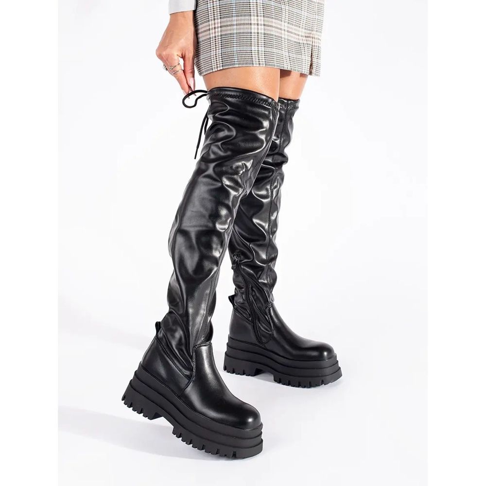 Crni musketeri na platformi savršen su izbor za žene koje cijene i modni izgled i nose udobnost. Napravljene od visokokvalitetne ekološke kože, ove elegantne čizme oduševljavaju se svojim modernim dizajnom i univerzalnom crnom bojom, što se dobro uklapa u trendove jesenske zime.