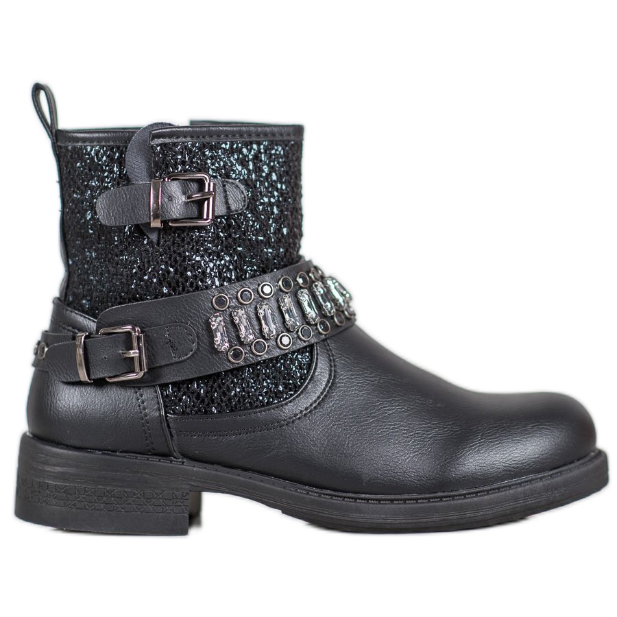 Black Bestelle Workers savršen su izbor za žene koje traže modernu i udobnu obuću za sezonu jesen/zima. Izrađene od visokokvalitetne imitacije kože, ove gležnjače savršeno spajaju stil i udobnost. Njihov jedinstveni dizajn obogaćen je ukrasnom kopčom, kamenčićima i kristalima koji im daju jedinstven karakter.