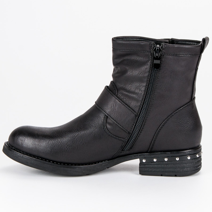 Crne radničke čizme izrađene od visokokvalitetne ekološke kože idealan su prijedlog za žene koje žele unijeti malo oštrine u svoj svakodnevni stil. Ove elegantne cipele, koje se kopčaju praktičnim patentnim zatvaračem sa strane, spajaju udobnost i moderan dizajn, što ih čini savršenim za jesen i zimu.