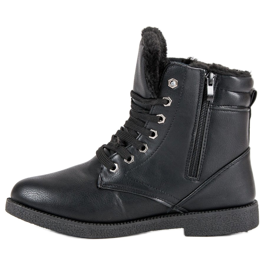 Crne radnice su na vezanje i imaju patentni zatvarač što ih čini jednostavnim za oblačenje i skidanje. Visina cipele seže iznad gležnja, što dodatno osigurava toplinu i stabilnost. Izrađene od sintetičkih materijala, lako se čiste i ne zahtijevaju kompliciranu njegu.