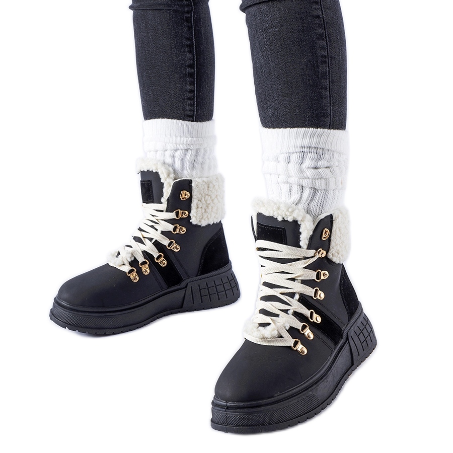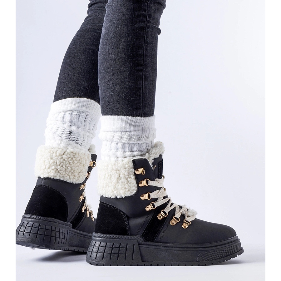 Rodrigo crni radnici na ogromnoj platformi - kombinacija stila, udobnosti i funkcionalnosti. Ove zimske čizme za gležnjeve savršen su izbor za hladnije dane: izolirane s krznom, izrađene od ekološke kože i postavljene na stabilnoj platformi od 5 cm koja će dodati nekoliko centimetara, bez odustajanja od udobnosti.