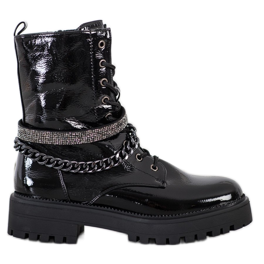 Predstavljamo Seastar Black Workers with Chain - savršen spoj elegancije i rock stila, savršen za svakodnevnu upotrebu. Ove moderne čizme, dostupne u klasičnoj crnoj boji, odlikuju se ukrasnim lancem i suptilnim kristalima koji im daju jedinstven karakter.