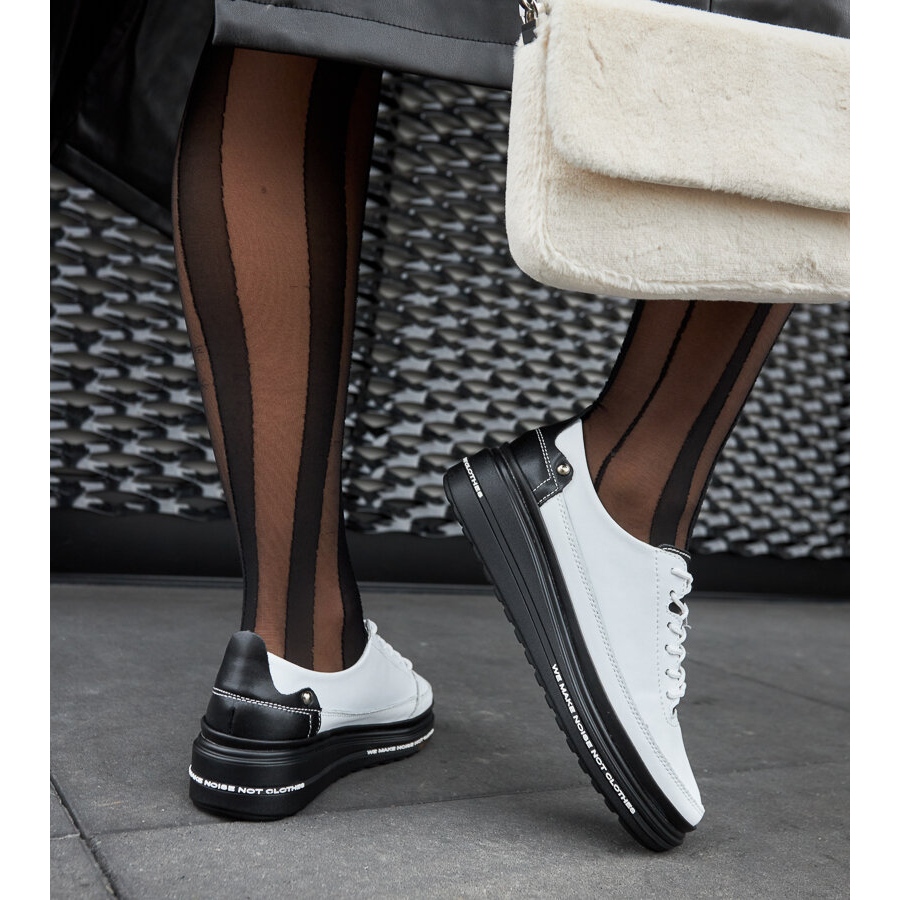 Pojedinosti: Crno-bijele kožne wedge tenisice Piano bijela