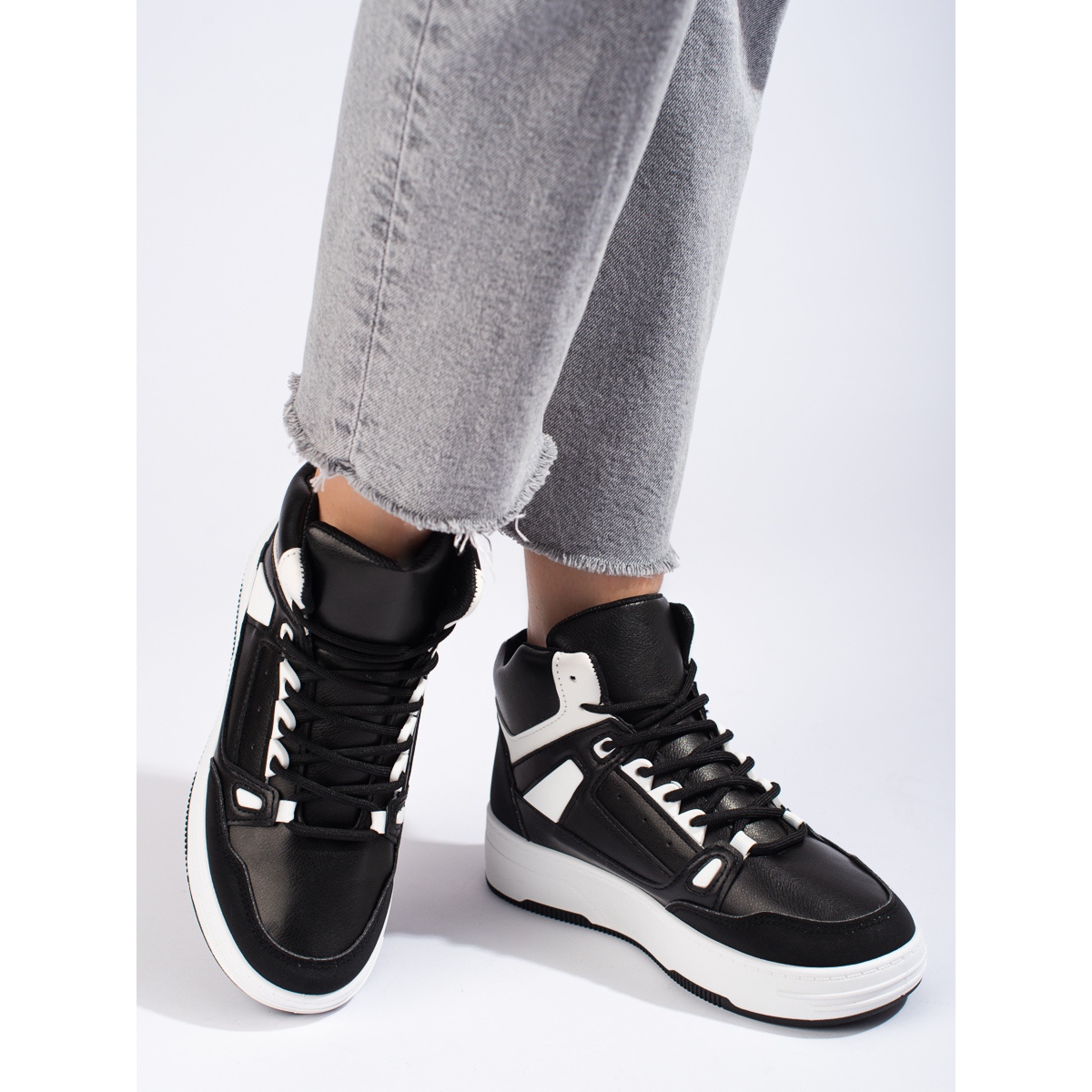 Crno-bijele visoke tenisice SHELOVET savršen su izbor za žene koje cijene spoj sportskog stila i moderne elegancije. Ove tenisice savršene su za žene koje svakodnevno provode vrijeme aktivno, ali se ne žele odreći svog izražajnog i modernog izgleda.