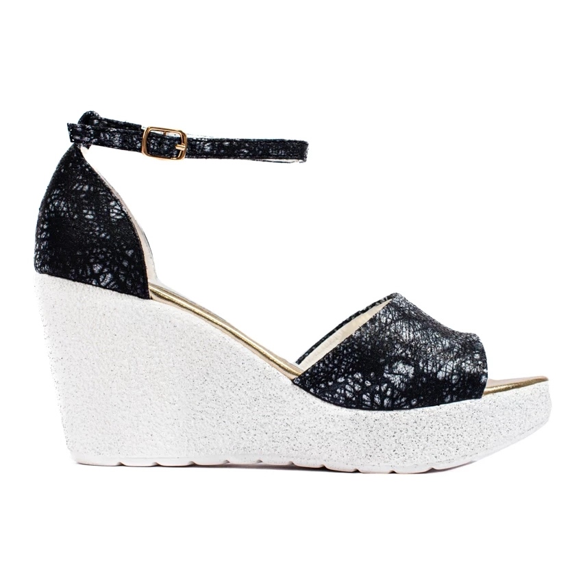 Pojedinosti: Crno-bijele ženske sandale na wedges marke Shelovet crna
