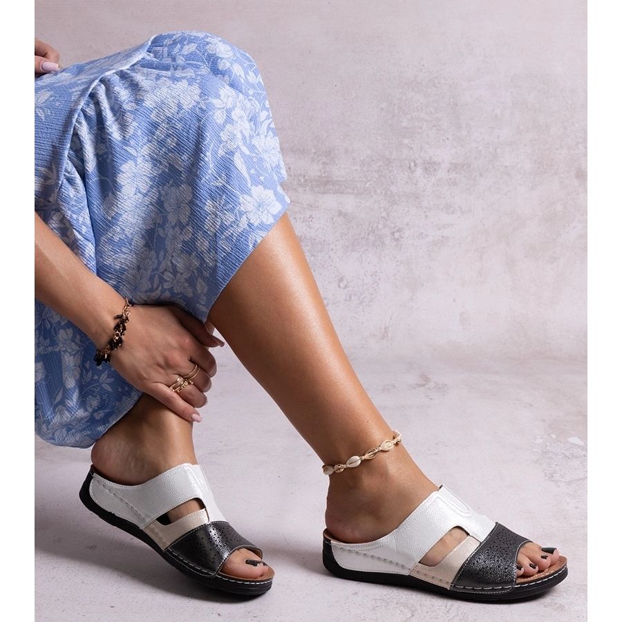 Otkrijte eleganciju i utjehu ljeti zahvaljujući crno -bijelim zaklopcima sjajem Saminarom. Ovi elegantni flip jarkovi, izrađeni od metalne eko kože, kombiniraju moderan dizajn s najvećom udobnosti. Njihovi gumeni potplati pružaju izvrsnu prianjanje, što ih čini savršenim za ljetne šetnje i opuštanje na plaži.