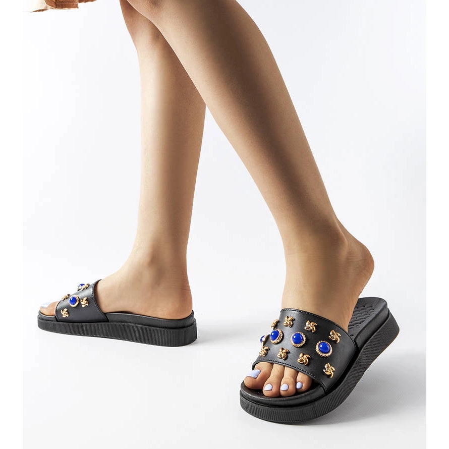 Crno ukrašeni montesarchio flip flops - stil i udobnost za ljeto