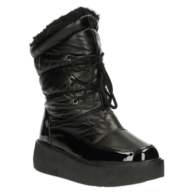 Predstavljamo crne čizme za snijeg na vezanje Filippo DBT3403 koje su savršen izbor za zimske dane. Ove elegantne čizme odlikuje se preciznom izradom od lakirane ekološke kože koja osim jedinstvenog izgleda osigurava i dugotrajnost.