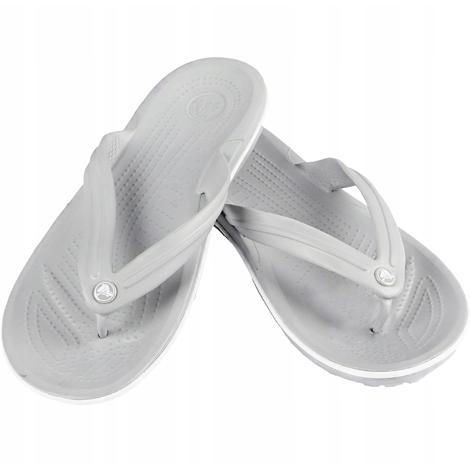 Lagan, udoban i elegantan ljetni prijedlog - Crocs CrocBand Flip Plip Plops u svijetlo sivoj boji s bijelim detaljima. Napravljeni od croslite materijala, oni pružaju izuzetnu udobnost upotrebe: umetak s osjetljivim izbočinama masira stopalo i potiče cirkulaciju, a sportski remen u visini metatarsusa naglašava modernu, aktivnu prirodu obuće. Savršeno za plažu, bazen i svakodnevne ljetne izlete-sezona će biti brzo.